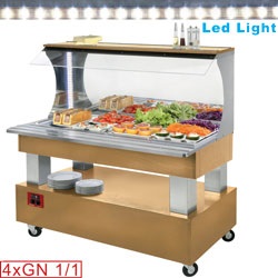 - Přístěnný chladící salátový bar, kapacita 4x GN1 / 1-150 (světlé dubové dřevo).