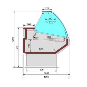 - Boční tvrzená skla, přední sklápěcí oblé sklo s dokonalou viditelností pro prezentaci produktů.