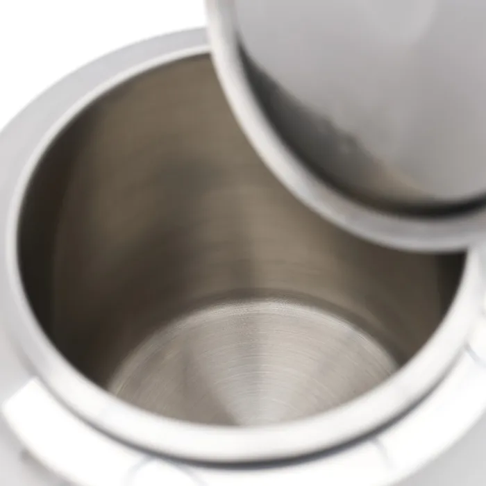 - Edelstahl-Ausführung mit Edelstahl-Innenbehälter, Deckel mit Löffelaussparung für kontinuierlichen Einsatz.