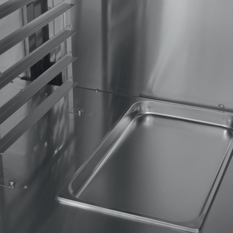- Innen GN Wanne (auf dem Boden), um Wasser einzulassen und den Schrank zu befeuchten.