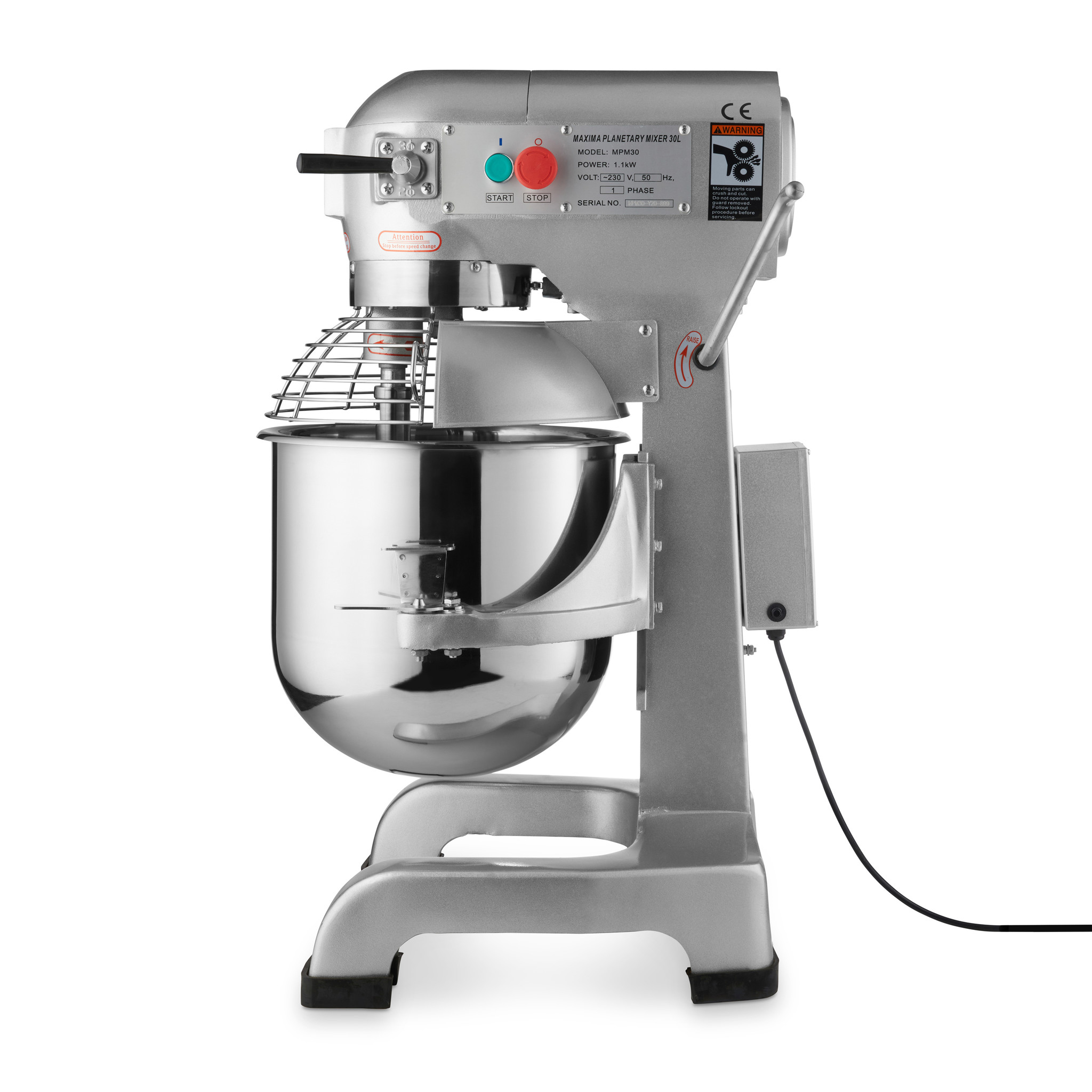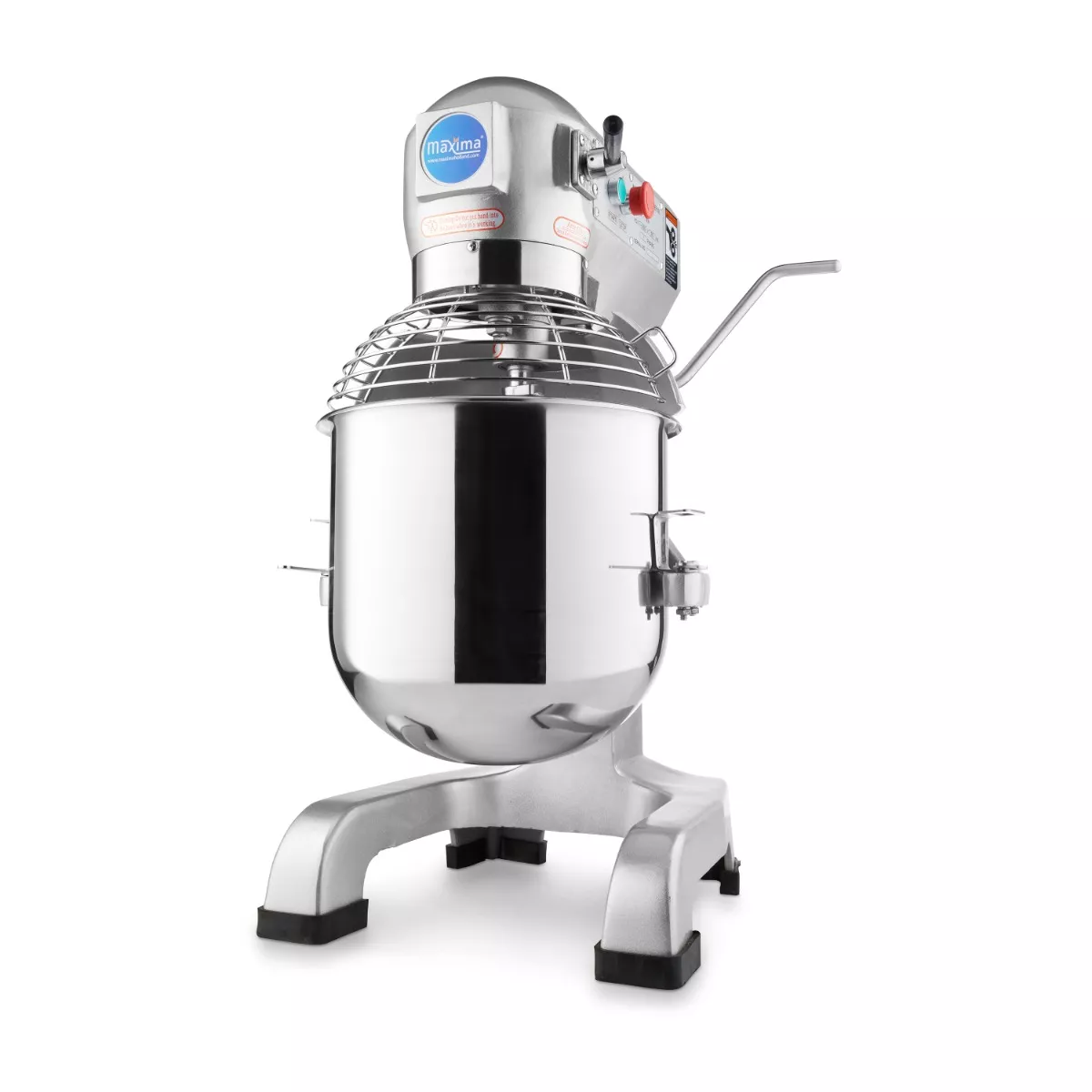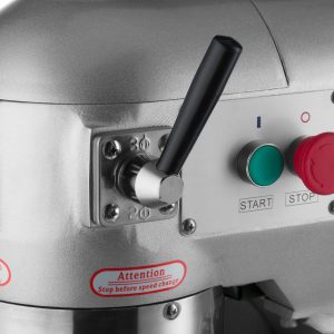 Die Arbeit in einer Großküche erfordert hohe Sicherheitsstandards. Die Bedienung dieses professionellen Planetenmischers ist dank der separaten Start- und Stopptasten sehr einfach. Während des Knetens und Mischens ist die Rührschüssel mit einem Schutzgitter aus Edelstahl umgeben. Zusammen mit den integrierten doppelten Sicherheitsschaltern ist dieser Küchenhelfer sehr sicher in der Anwendung. Das Edelstahlgehäuse ist zudem mit einer kratzfesten Beschichtung versehen. Sowohl der Planetenmischer als auch das mitgelieferte Zubehör sind mit warmem Wasser und einem milden Reinigungsmittel leicht zu reinigen.