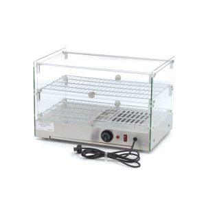- Kompakte, zweistöckige Warmhaltevitrine für warme Snacks, Sandwiches, Pizza und verzehrfertige Speisen.