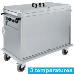 - 3x GN 1/1 with lids, 3 Temperatures, cupboard with tilting door.
