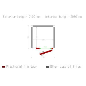 - Door with useful passage 700 x 1900 mm (positioning of the door at choice, on the 4 sides).