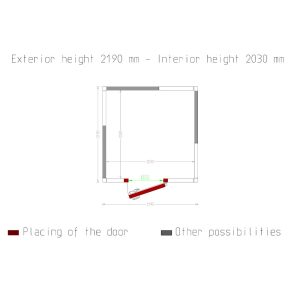 - Door with useful passage 800 x 1900 mm (positioning of the door at choice, on the 4 sides).