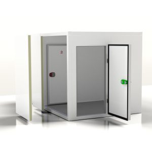 - Specific chamber with 2 zones for negative (or positive) temperature, thickness of walls, floor and ceiling of 100 mm, modulation with panels of width 200 to 1200 mm (200+200+200 …).