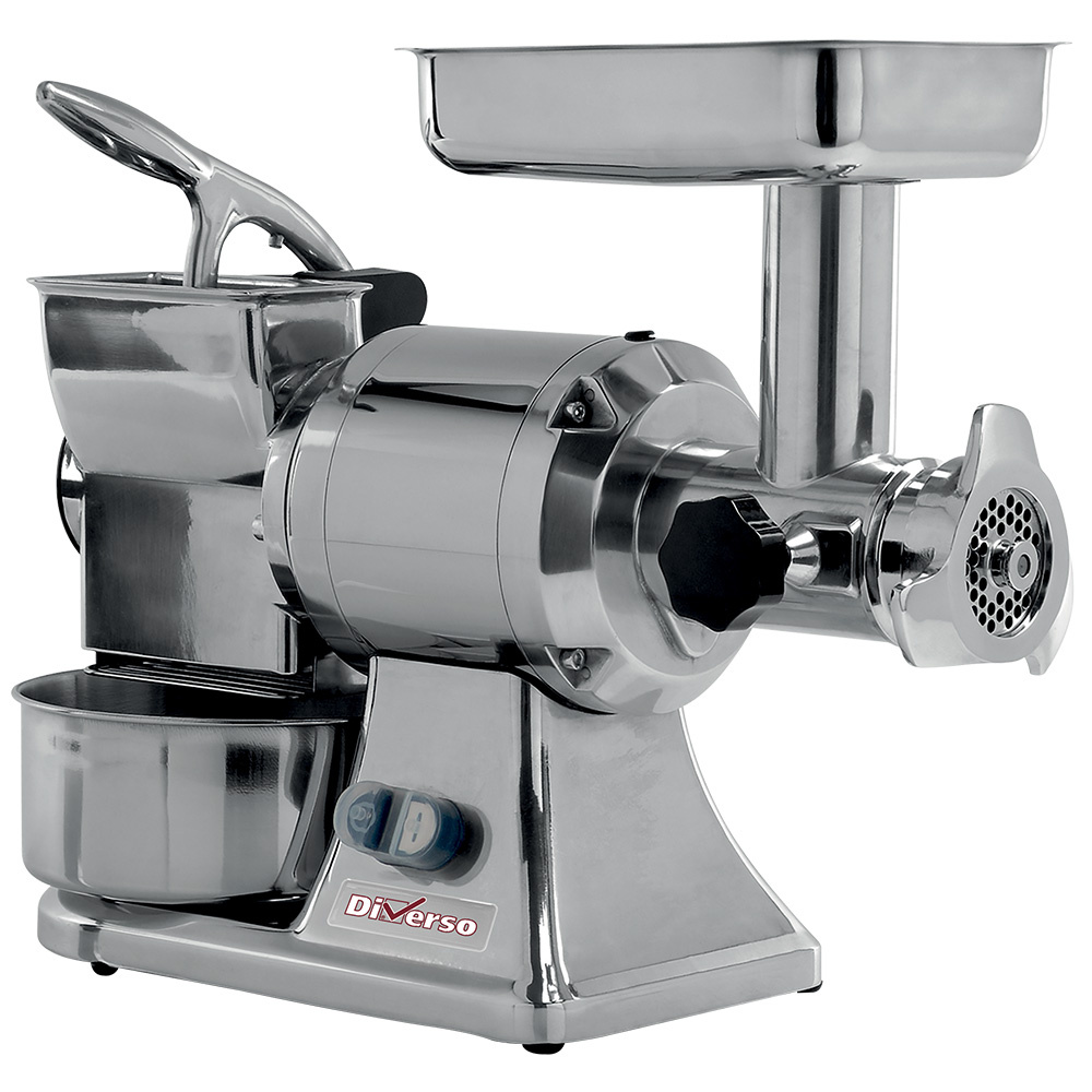 - Delivered with a recovery container for minced meat in stainless steel AISI 304.