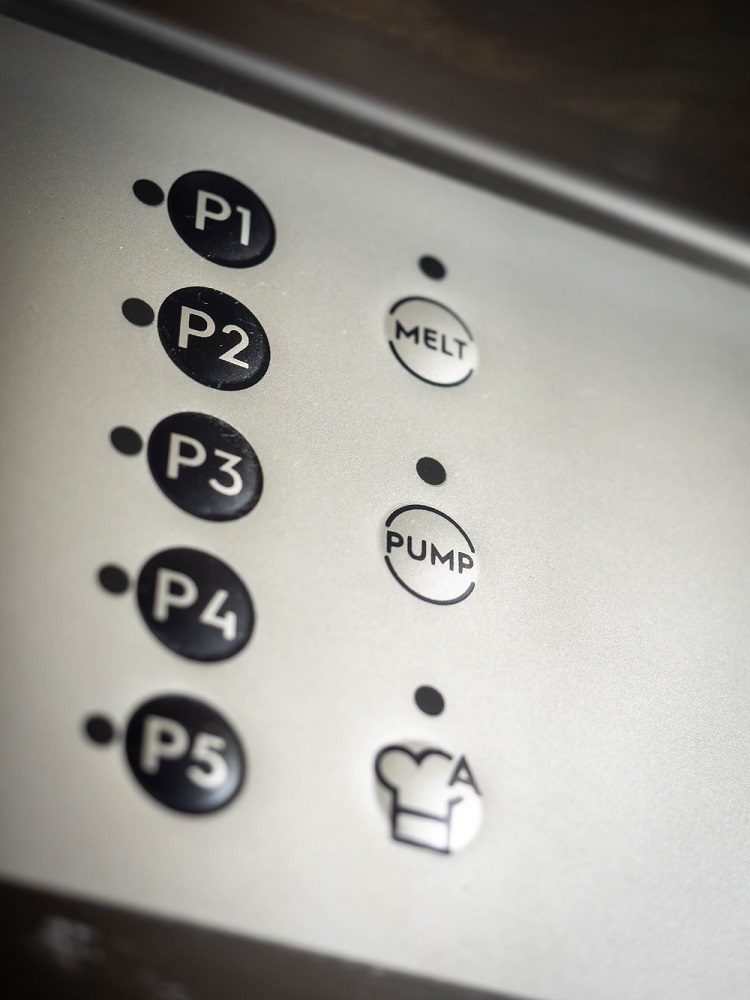 Patented solution reducing risks in case of misuse (cooking at low oil level or draining hot oil); easy reset of safety thermostat; ease of use (lower t° on external panels); improved resistance against grease infiltration; reinforced lifting system; predisposed for paper filter and oil drain accessory; automatic load compensation programs