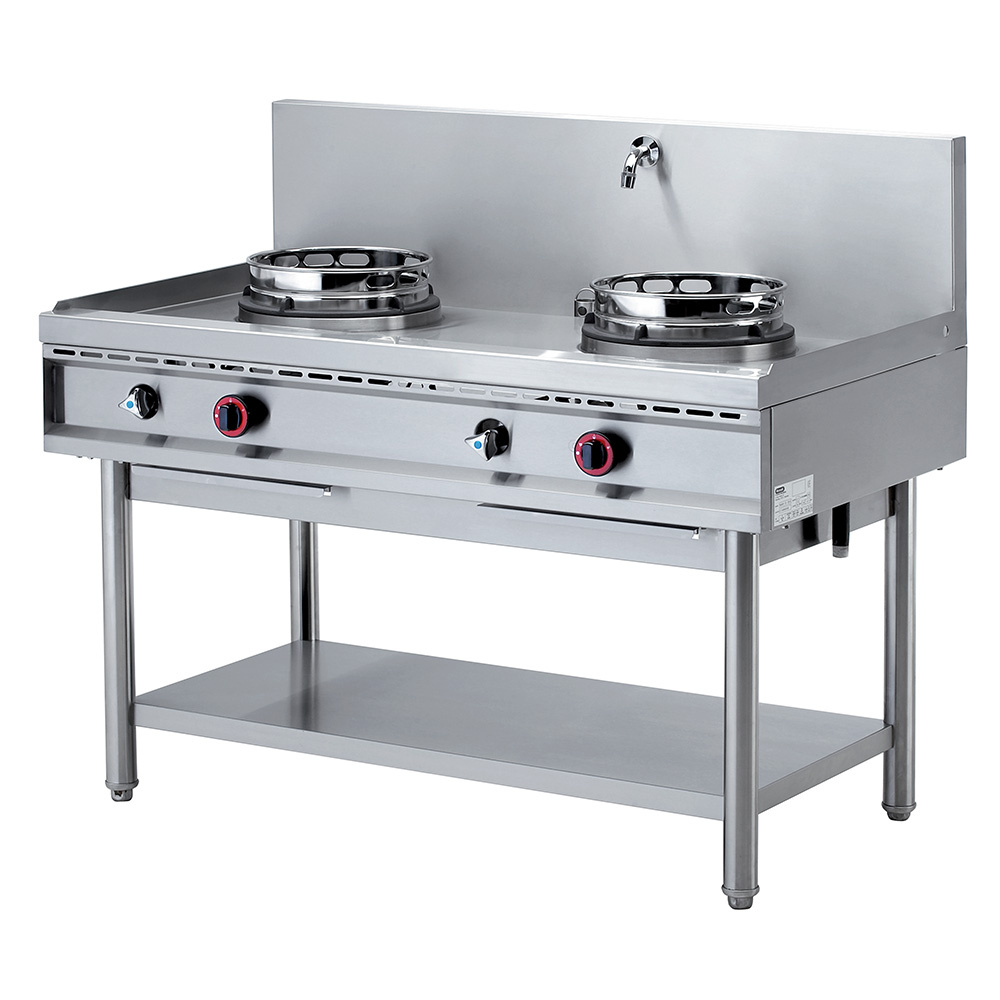 - Gas wok stove with two burners, 2 x 13 kW.