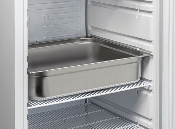 - Stainless steel exterior, interior made of white thermoformed plastic.
