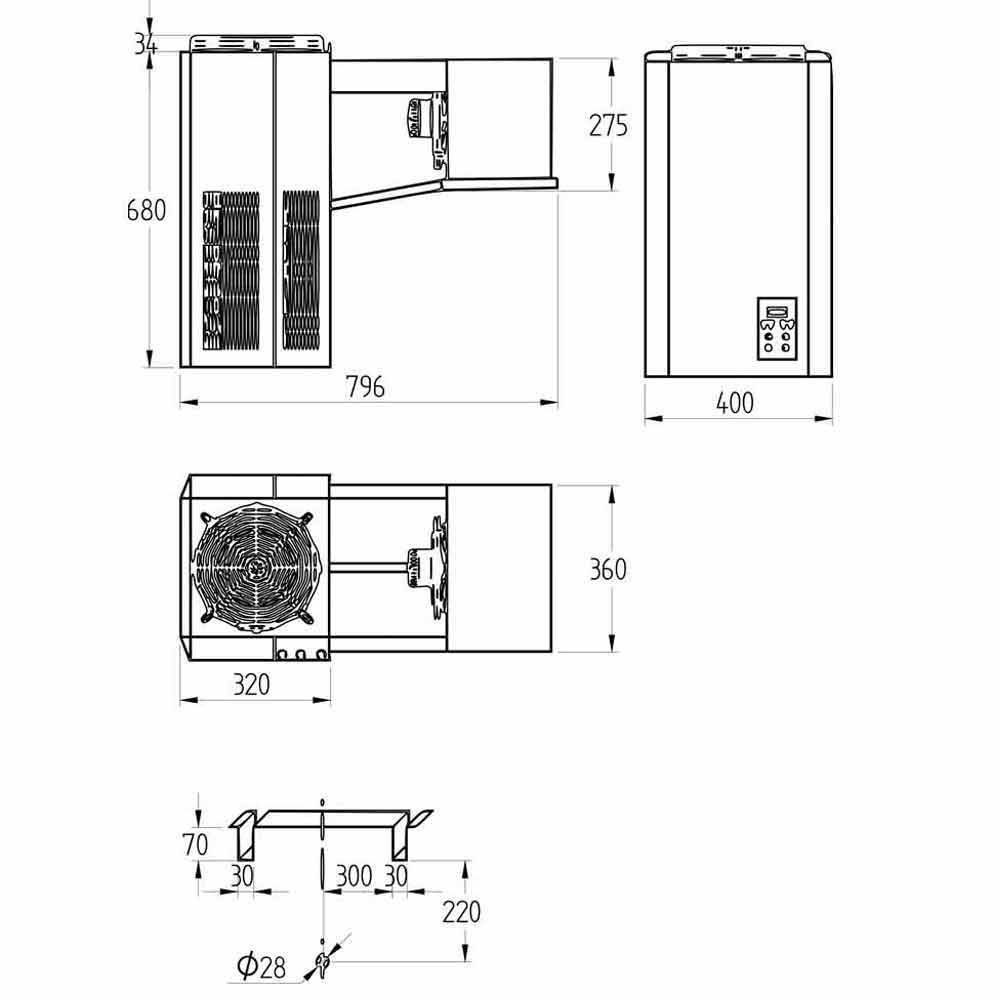 - Cooling capacity 817 (W/f) for chamber volume 4,8 m³ / 4800 Lit (T° internal -20° C & T° external +32° C).