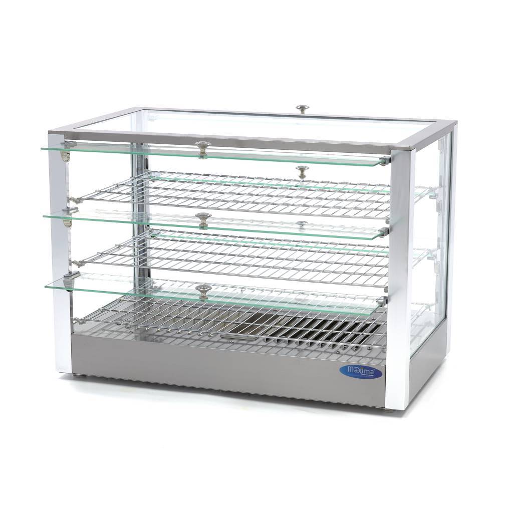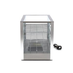 - Three-tier heated display unit for hot appetizers, sandwiches, pizza, and ready-to-serve food.