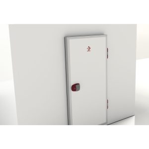 - Swinging door thickness 80 mm also insulated with polyurethane (43 Kg/m3), with right hinges (on request, possibility of left hinges: CGC/BF), very strong, reinforced with a peripheral frame in anodized aluminum, provided with a magnetic seal in EPDM “pressure” (easy replacement, without tools), adjustable rising hinges and with stop at 100°, external handle with key lock, internal closing with safety device.