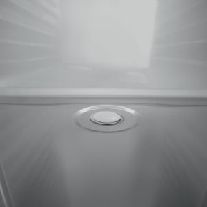 - Stamped interior bottom, with draining tap (high maintenance), rounded angles and corners (without roughness), (adjustable) stainless steel rack and slides in (L) (65-mm spacing).