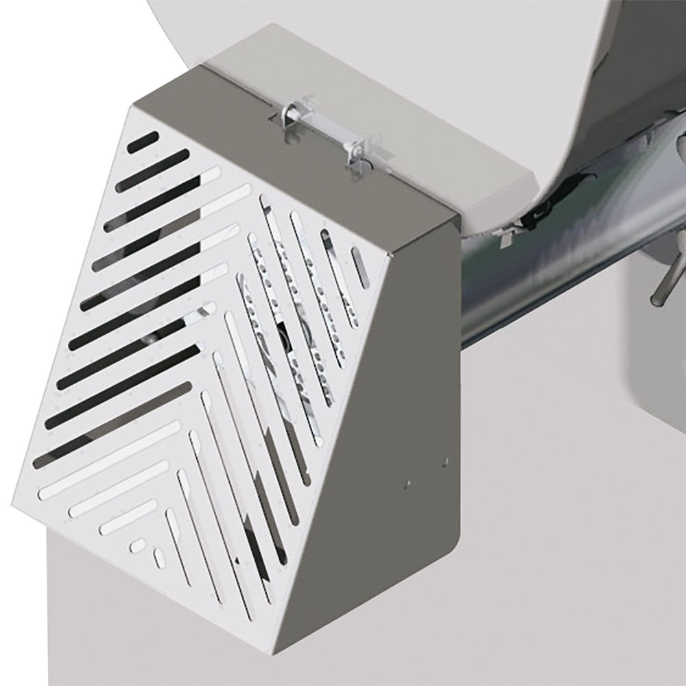 - Large removable AISI 304 stainless steel feed tray (563x900xh120 mm) with safety microswitch and square feeding neck that allows for faster processing cycles.
