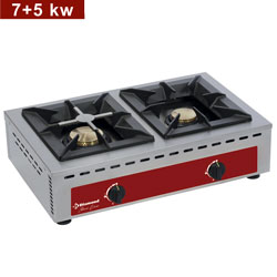- Burner in chromium-plated cast iron with brass crown with high heat conductibility (1x 7 kW and 1x 5 kW).