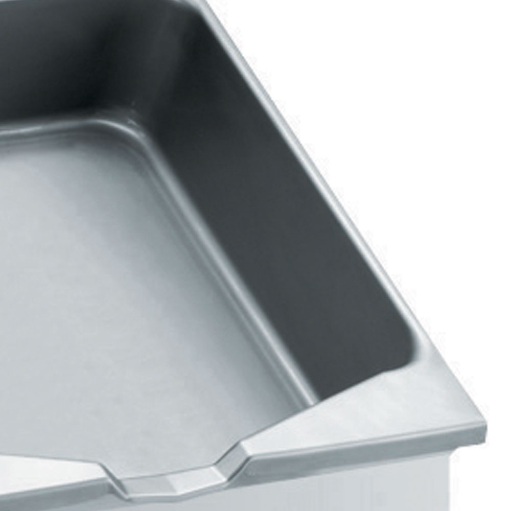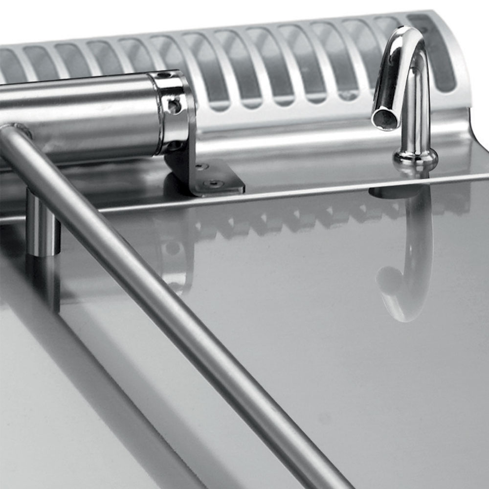 - The “stamped” cover of the tank is on hinges with “torsion spring” in stainless steel, allowing a gradual closing and opening, provided with an ergonomic front handle.