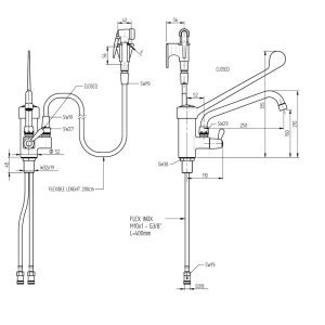 - Hadica ručnej sprchy 2000 mm, nástenná montáž.