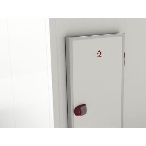 - Dvere s hrúbkou 100 mm dôkladne izolované polyuretánom 43 Kg/m3, s pravými pántami.