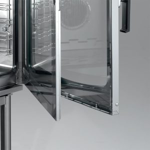- Dvere s dvojitým zasklením, ergonomická a tepelne izolovaná rukoväť, automatické zatváranie.