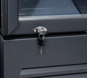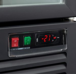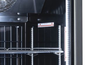 - Vyhrievané dvere s antikondenzačným trojitým bezpečnostným sklom a argónovou výplňou, vonkajšia hliníková hranatá rukoväť, automatické zatváranie.