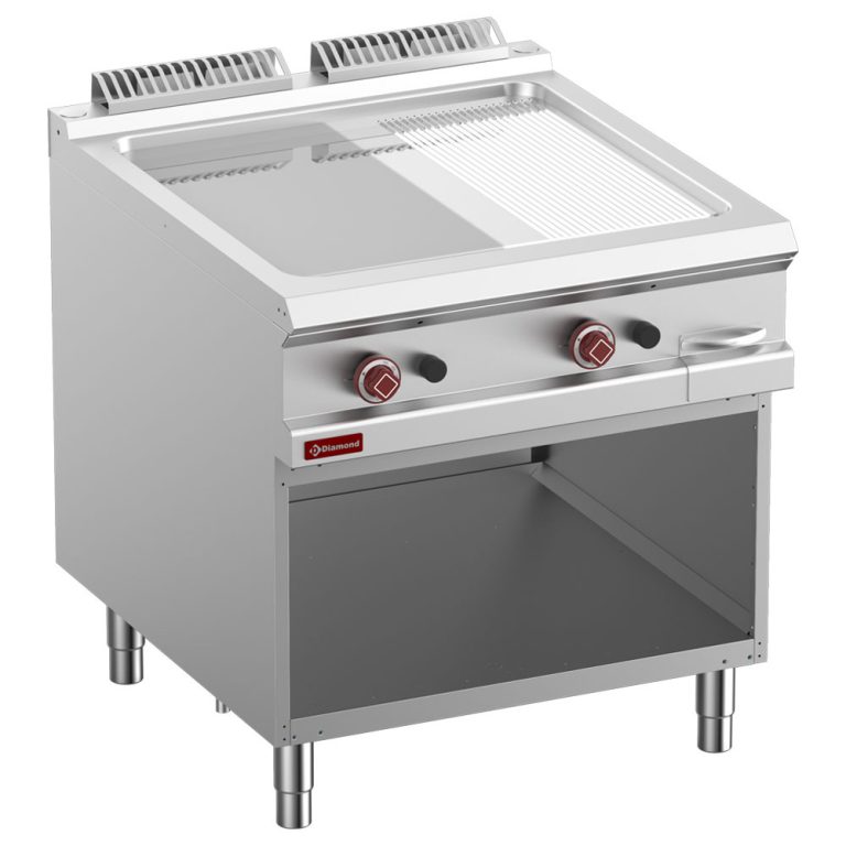 PLYNOVÝ GRIL S 2/3 HLADKOU 1/3 RYHOVANOU PLATŇOU „TVRDÝ CHRÓM“ G9/PMCA8-N