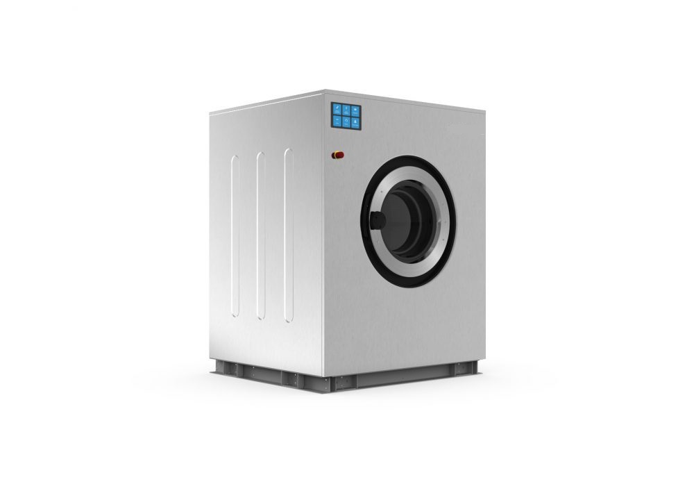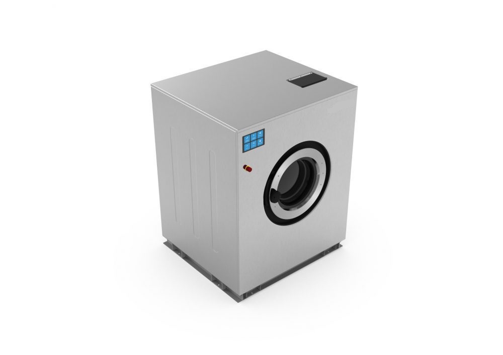 - Priemyselná práčka s kapacitou 18 kg a s pevným ukotvením navrhnutá pre dlhodobú životnosť.