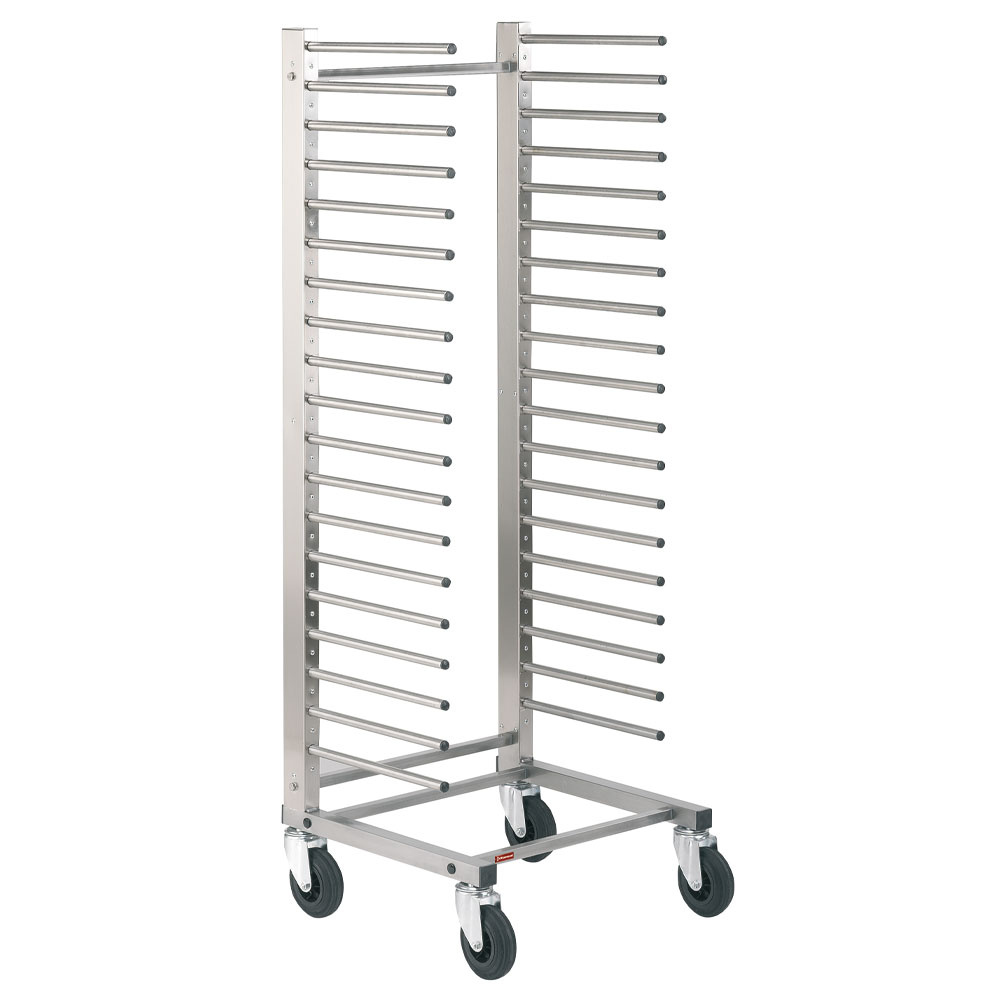 Nerezové nosné rúrky, priemer 180 mm. Kapacita 20x 600×400 pekárenských plechov.