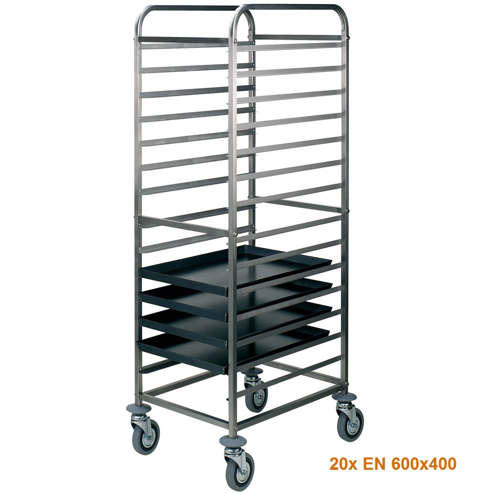 Kapacita 20x 600x400mm. Vyrobené z nerezovej ocele. Zváraná konštrukcia v „L“-forme.